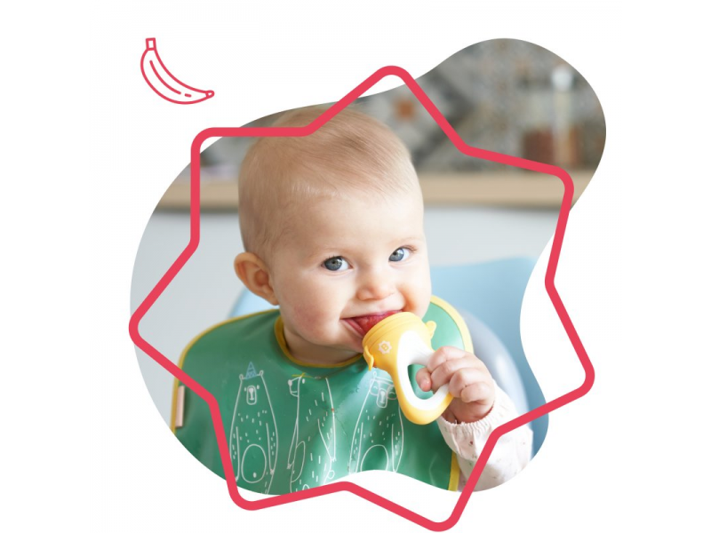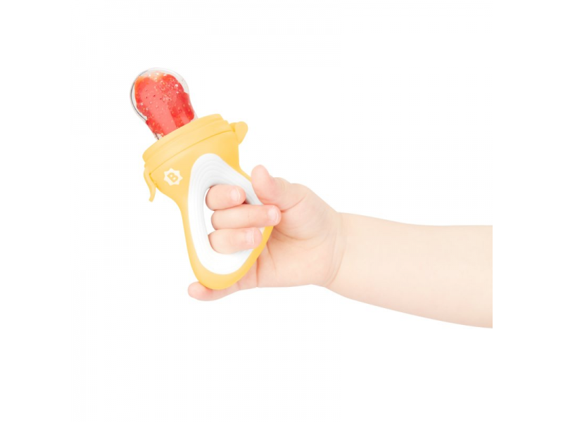 Siliconul are o textura speciala, potrivita pentru gingiile micutului. Dimensiunea dispozitivului a fost conceputa astfel incat copilul il va putea prinde usor. De asemenea cantitatea de fructe si legume care incape in dispozitiv este cantitatea optima, care il va ajuta pe copil sa se obinuiasca cu reflexul de mestecare.