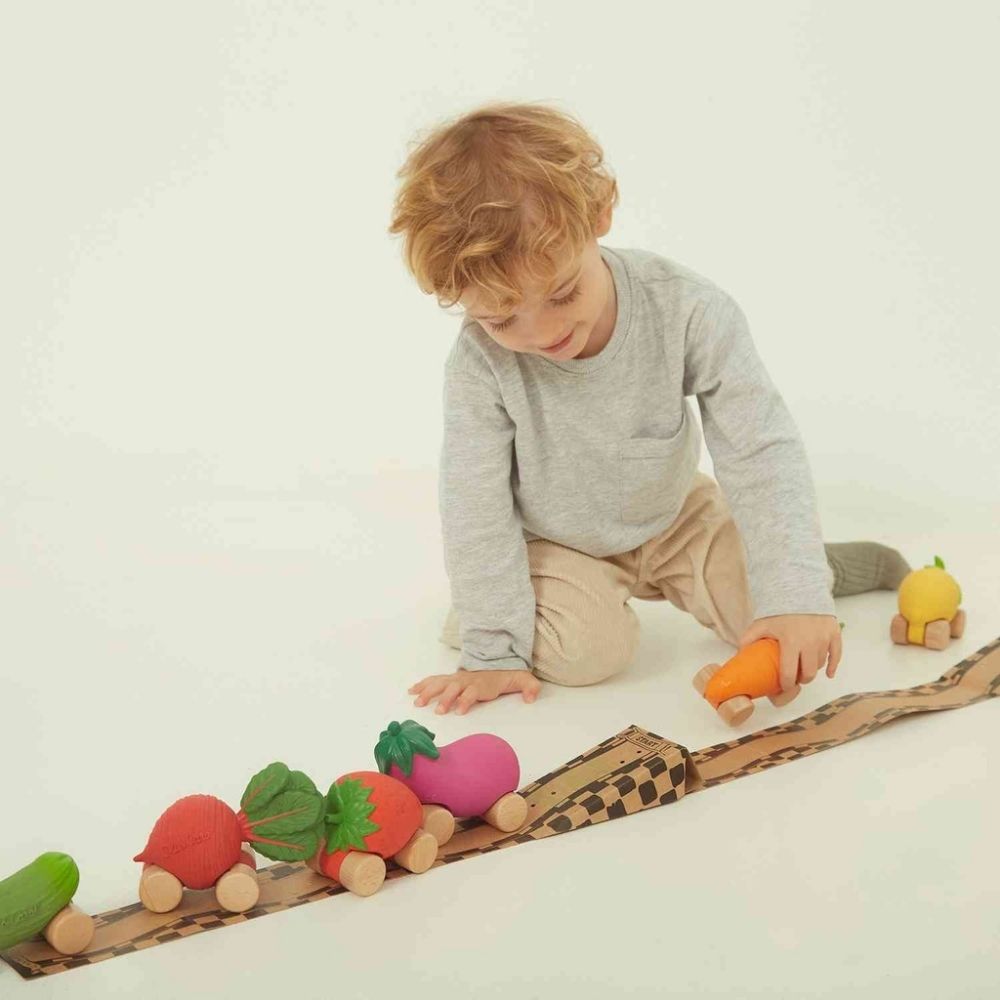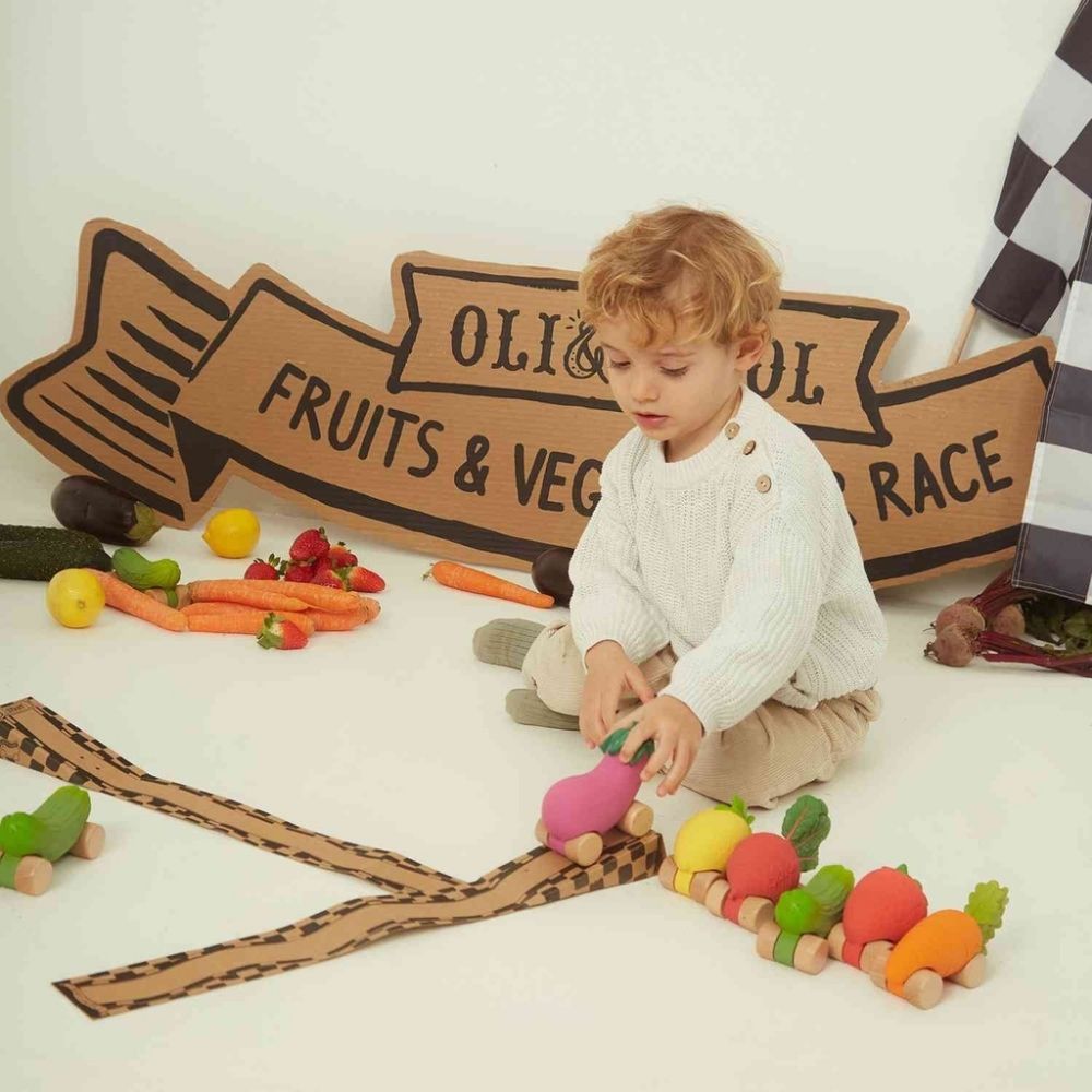 Mașinuța Căpșunica Sweetie este o jucărie sigură, sustenabilă și adorabilă - perfectă pentru a stimula curiozitatea, coordonarea și bucuria de a descoperi lumea, semnată Oli&Carol.