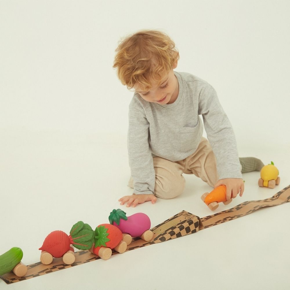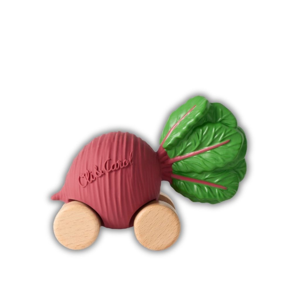 Mașinuța pentru bebeluși Sfecla Betty de la Oli&Carol este o jucărie ecologică și interactivă, concepută pentru a aduce bucurie, mișcare și conștientizare în joaca celor mici. Cu un design adorabil în formă de sfeclă roșie, Sfecla Betty stimulează imaginația, dezvoltarea cognitivă și coordonarea motorie. Este realizată manual din cauciuc natural și lemn certificat FSC, fiind complet lipsită de plastic sau silicon. Roțile din lemn o fac ușor de rostogolit, iar textura moale și suprafața tactilă susțin dezvoltarea simțului tactil și a abilităților fine. O jucărie perfectă pentru bebeluși încă din primele luni de viață.