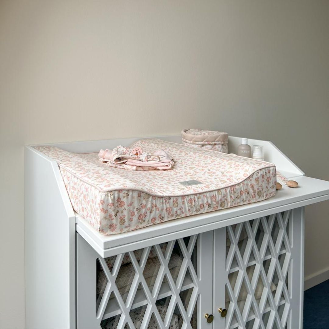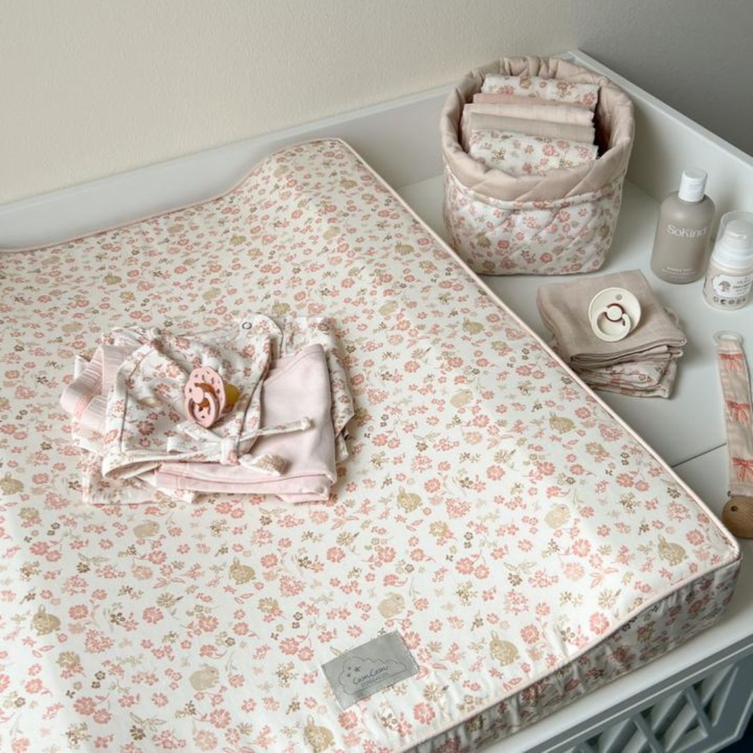 Creează un spațiu sigur, confortabil și elegant pentru schimbarea bebelușului cu salteaua de înfășat Cam Cam Copenhagen – model Augusta. Cu un imprimeu adorabil cu floricele roz și iepurași crem, această saltea adaugă o notă jucăușă și delicată camerei copilului tău.